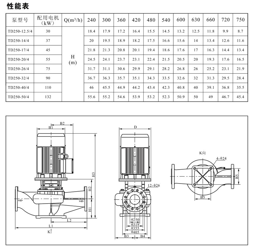 TD250系列單級管道離心泵,配有標準電機和機械密封。此類產品的結構與相近類型產品相比,更不易受到泵送液體中雜質的影響。產品設計為頂部可拉出的拆裝形式,其可以在不影響管路系統的情況下對泵進行維修。所有泵采用創新式便拆式機械密封,更好機械密封無需拆卸電機。